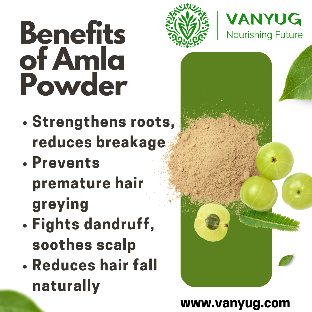 Amla (Indian Gooseberry): Rich in Vitamin C, helps strengthen roots and promote growth.