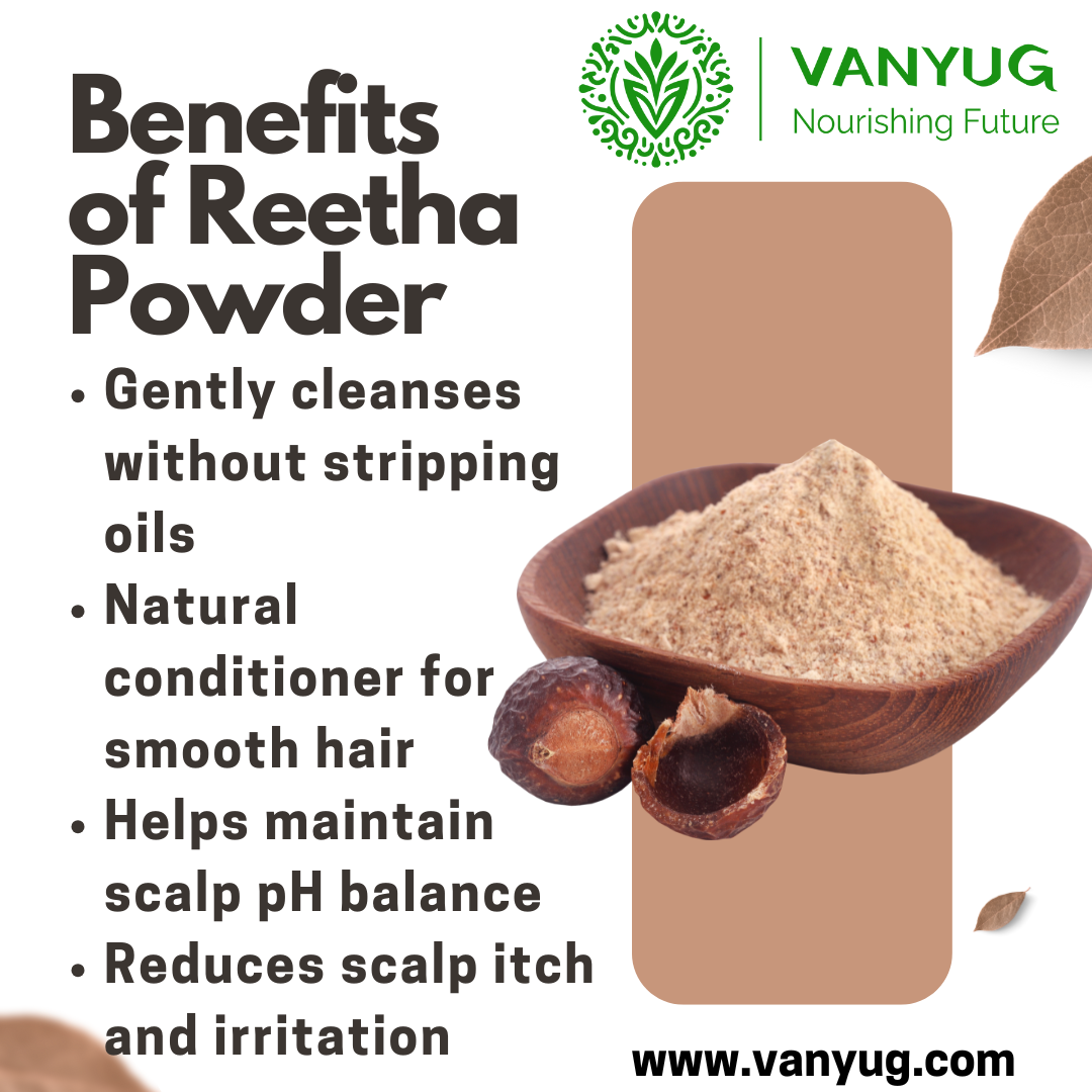 Reetha (Soapnut): Natural cleanser that removes dirt and excess oil without stripping moisture.